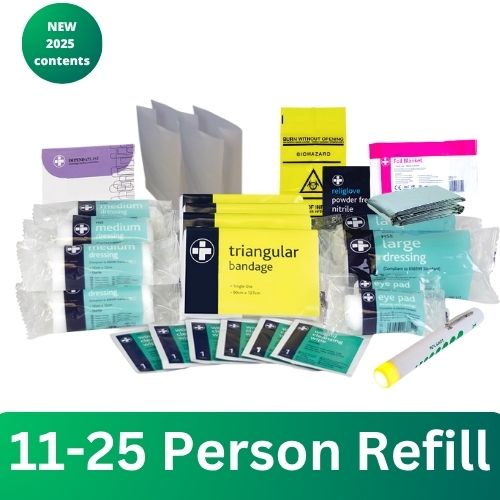 Irish hsa recommended first aid refill - Eye wash ( 2 x 500ml bottles ) and burn dressings ( 1 small & 1 large water based burns dressing ) can be purchased seperately.