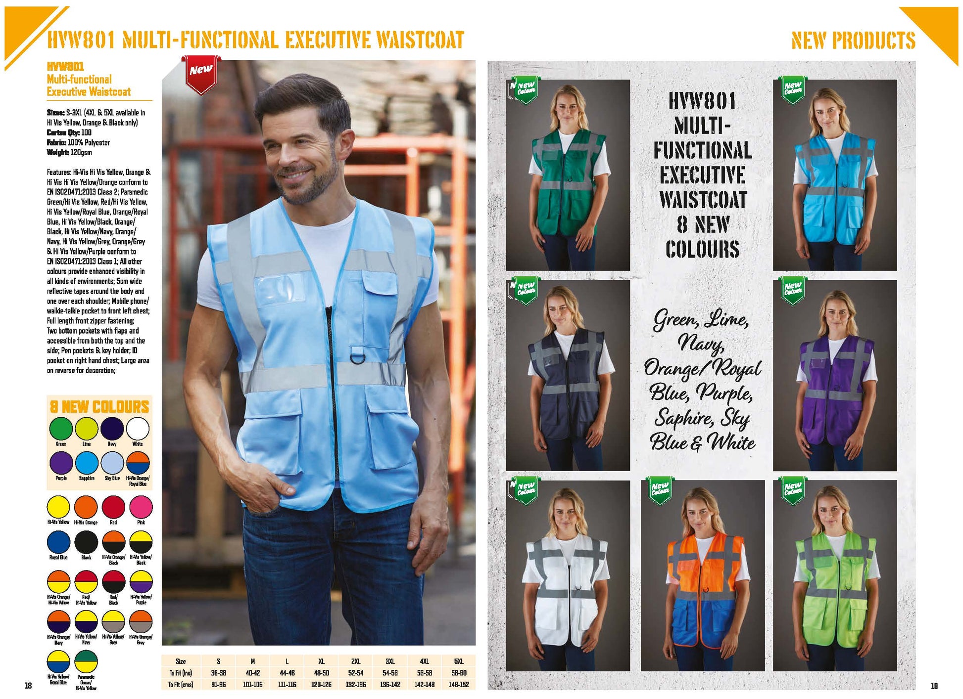 Hi-Vis Yellow, Orange & Yellow/Orange conform to EN ISO20471:2013 Class 2. Paramedic Green/Yellow, Royal Blue/Yellow, Red/Yellow, Yellow/Black, Orange/Black, Yellow/Navy, Orange/Navy, Yellow/Grey, Orange/Grey, Orange/Royal Blue & Yellow/Purple conform to EN ISO20471:2013 Class 1. All other colours provide enhanced visibility in all kinds of environments. 5cm wide reflective tapes around the body and one over each shoulder. Mobile phone/walkie-talkie pocket to front left chest. Full length front zipper fastening. Two bottom pockets with flaps and accessible from both the top and the side. Pen pockets & key holder. ID pocket on right hand chest. Large area on reverse for decoration.